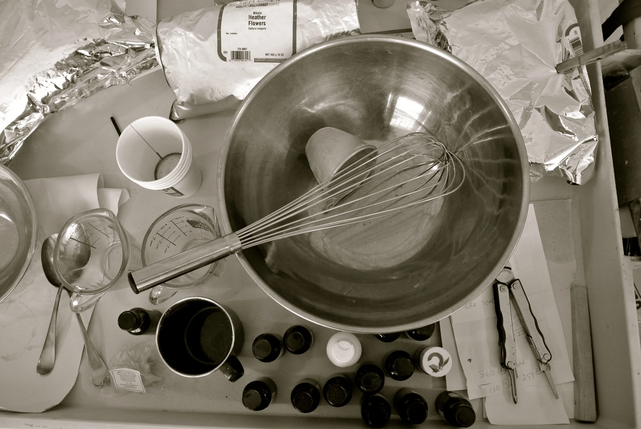 The factory is buzzing with the whir of the mixer and splash of oil. Located at the rear of the retail shop we keep a simple and basic little factory using many of the very same methods and tools we used 20 years ago back in the farm house. With the added addition of a few modern luxuries such as an electric mixer and silicone molds.
