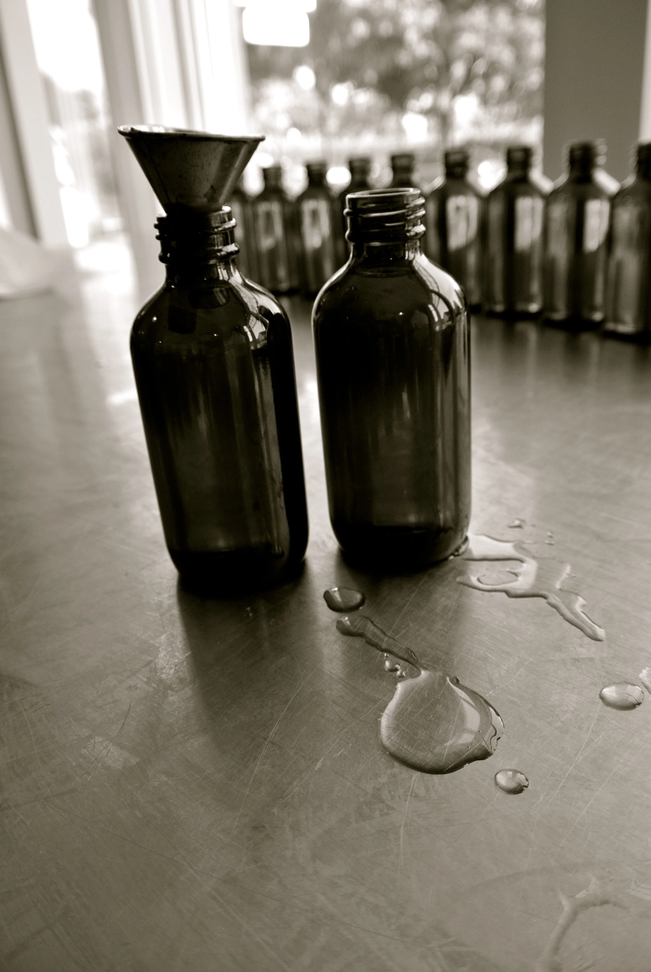 Essential oils are stored in dark bottles to keep the sun out.